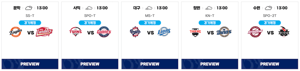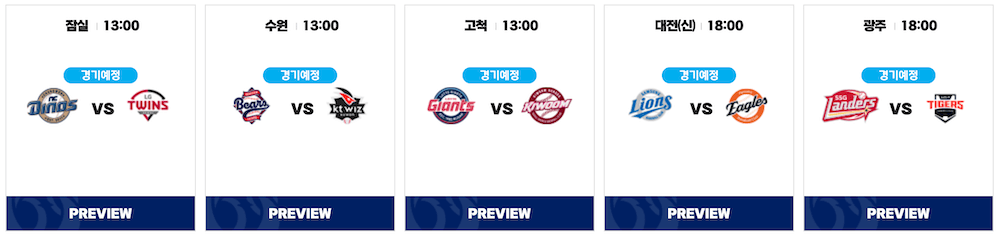 - 경기 시간: 오후 1시 (연장전 및 더블헤더 없음)